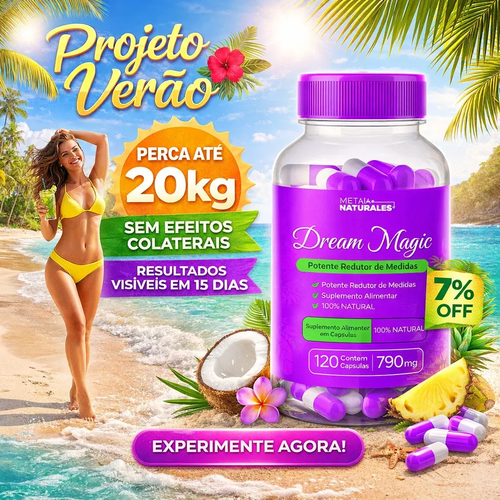 O Dream Magic é um emagrecedor natural de alta performance, desenvolvido para atuar em múltiplas frentes do emagrecimento: queima de gordura localizada, controle do apetite e vontade de doces, suporte ao metabolismo e equilíbrio emocional (ansiedade/estresse) — fatores que normalmente sabotam a consistência.