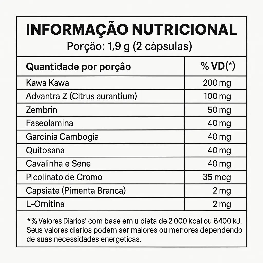 Sua fórmula avançada combina ativos cientificamente estudados que atuam em múltiplas frentes do emagrecimento: aceleração do metabolismo, controle da ansiedade, eliminação de líquidos e queima de gordura corporal — tudo isso sem causar efeitos colaterais.